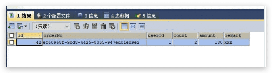 再次postman测试,我们立刻查看db_order数据库表信息(比较难捕获,因为提交事务超时就立刻回滚,看不到信息)
