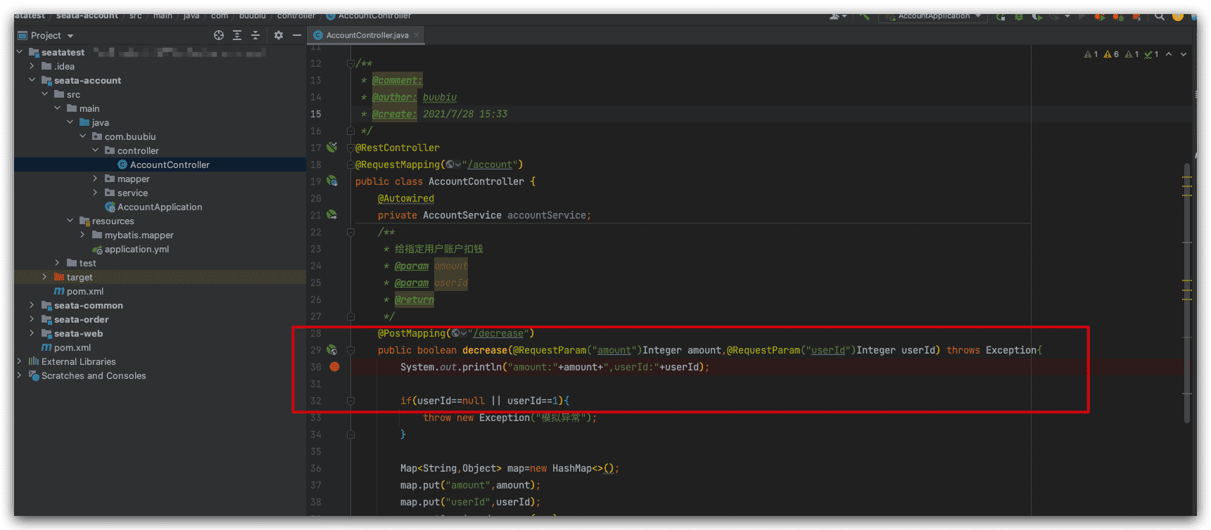 seata-account项目debug启动;
